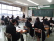1限の3学年は総合的な学習の時間でした。2つのグループに分かれて面接練習を行っていました。生徒が面接官役を担っていましたが、堂々と質問していました。受け答えする人もハキハキと答えていました。頼もしい感じでした。