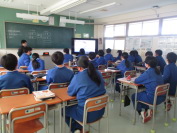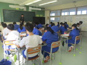 3限の1学年は保健体育でした。バスケットボールで、1分間に何回シュートできるか、テストをしているところでした。3学年は英語でした。Reading Lesson3の本文の音読を確認しているところでした。