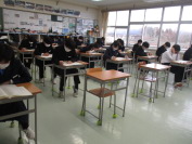 冬休み最終日の本日、3学年の実力テスト実施日でした。久々に登校した3年生でしたが、とても頑張っていました。