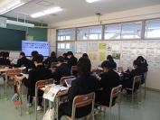 本日、2限の1学年は英語でした。一人1台端末を活用して、英文クイズに答えていました。空欄に適語を当てはめるクイズに盛り上がっていました。2学年は家庭科でした。単元「消費者トラブルとその対策」の学習で、悪徳商法に関する動画を視聴し、注意すべき点を確認していました。