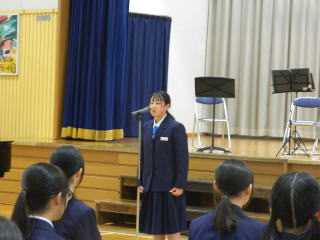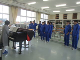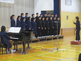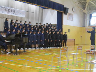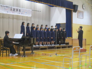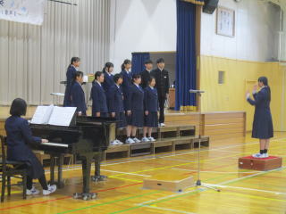 午後から、合唱発表会を実施しました。プログラムは、合唱発表会実行委員長の話、校長挨拶、全校合唱(校歌)、1学年「Let's search for