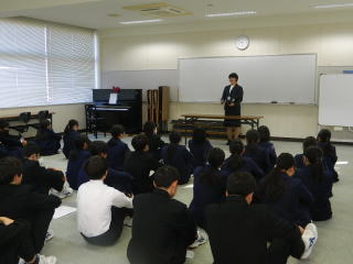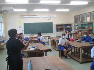 授業開きで、1年間の見通しや評価のポイントなどを聞いていました。これから彩色塑像「躍動する人体」の作品づくりに入るそうです。3学年は英語