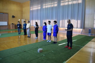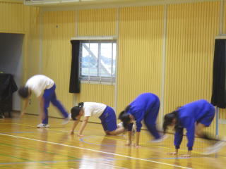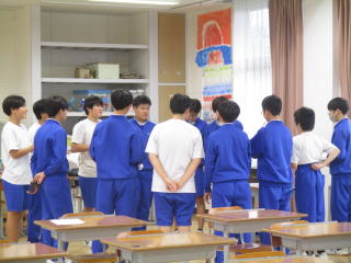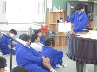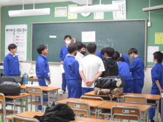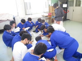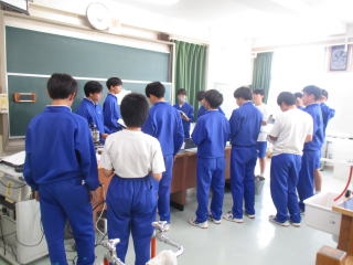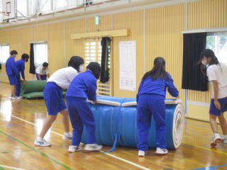 本日の3限、1学年は保健体育でした。まずは教室で器械体操について学び、その後、体育館に移動してマット運動の準備をしていました。2学年は理科でした。