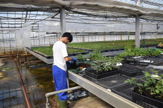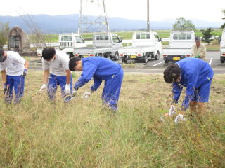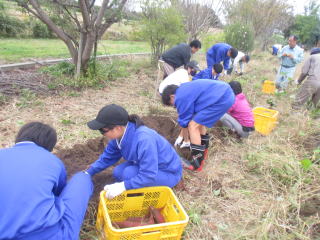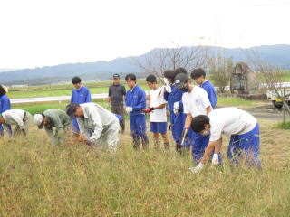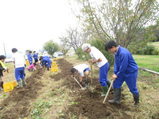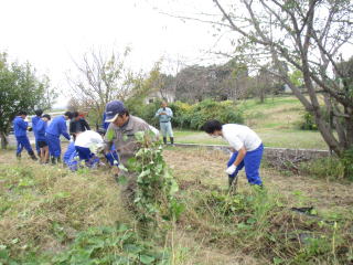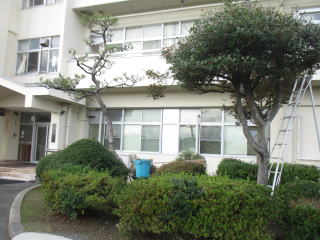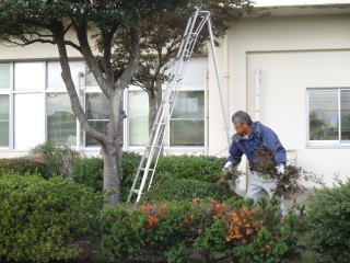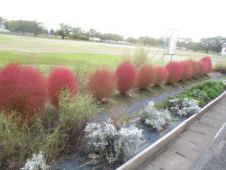 気温が下がり、グランド前に植えたコキアが赤く色づいてきました。用務手さんが冬囲い作業を見据えて、樹木の剪定を始めてくださっています。少しづつ冬に