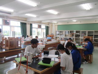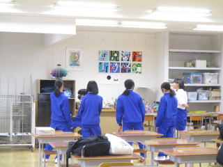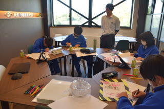 本日、2限の授業を参観しました。1学年は総合でした。1年間の総合学習の流れを聞き、総合ファイルに記名していました。2学年は美術でした。