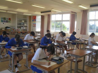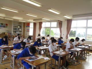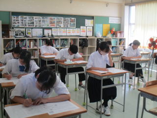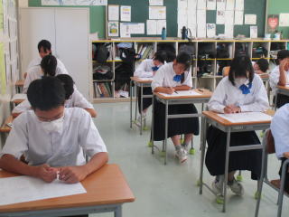 本日の1,2限に、3学年が全国学力・学習状況調査の国語と数学を実施しました。一生懸命に課題に向き合っていました。