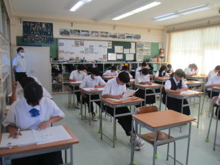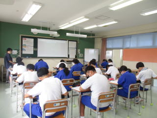本日、英語の授業でIBAを実施日しました。IBAテストは学校教育で育成を目指す英語力を測定するためのテストです。2学年は1限、3学年は