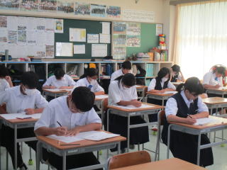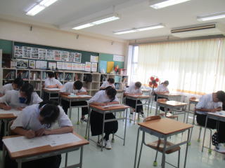 本日と明日の2日間で、NRTを実施します(1年生は知能検査も実施)。写真は1限の様子です。どの生徒も真剣な表情で課題に向き合っていました。