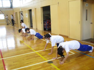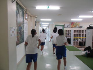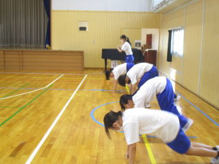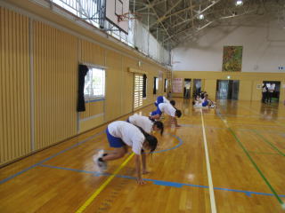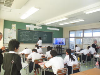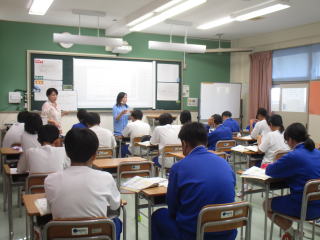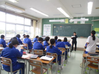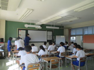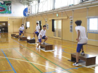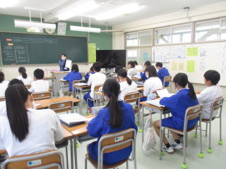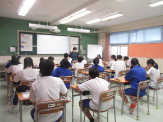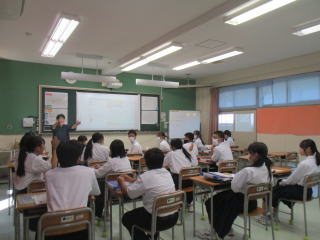 3限の1学年は、保健体育でした。体力テストの練習で、参観した時は、上体起こしと反復横跳びをしていました。2学年は英語でした。Lesson1Scene3