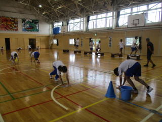 放課後に、1年生を含めた今年度最初の「佐中サーキット」を実施しました。上級生が教えたり励ましたりしながら、みんなでいい汗をかいていました。