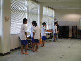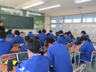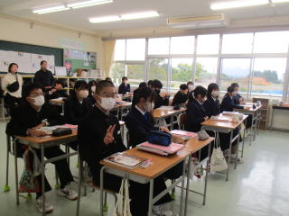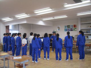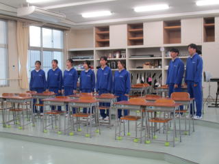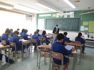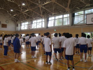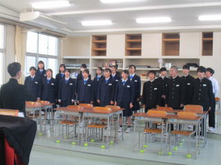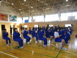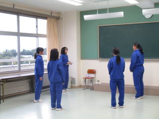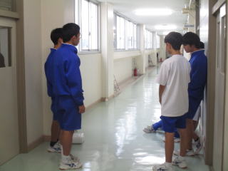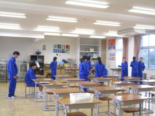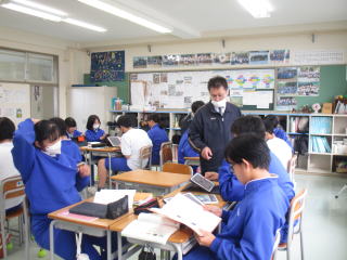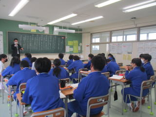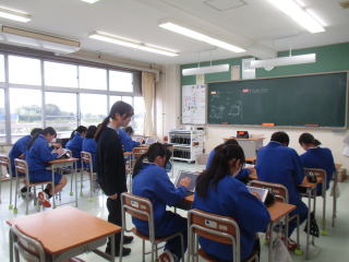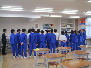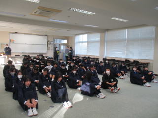 本日の5限の授業を参観しました。1学年は保健体育で、整列や「気を付け」「休め」の姿勢や所作などを学んでいました。2学年は社会科でした。