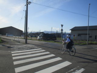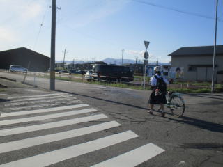 自転車通学の多くの生徒が、ヘルメットのあごひもをきちんと締め、一時停止や横断歩道横断時のルールを守るなど、安全に通学していました。