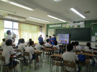 友達の新たな一面を発見する」というねらいを確認していました。2学年は、資料「左手一本のシュート(主題名:困難を乗り越える)」を用いた