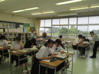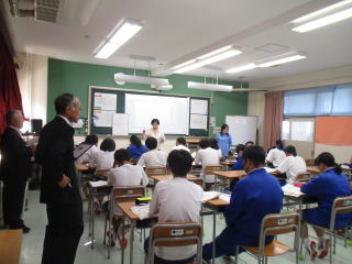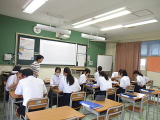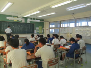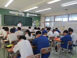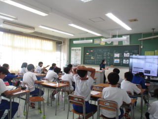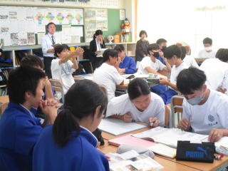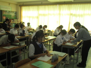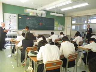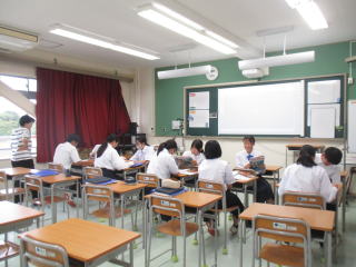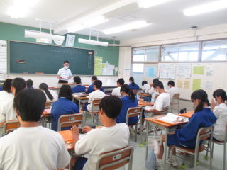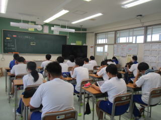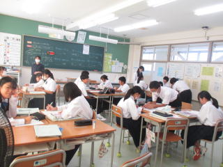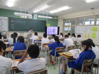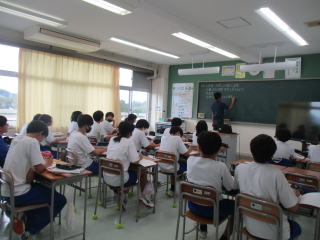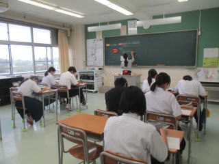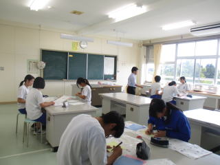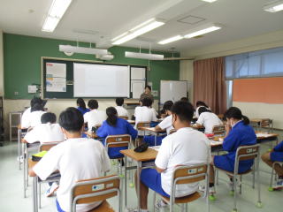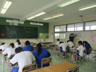 いました。2学年は国語でした。「徒然草」のまとめとして、古文で気をつけるポイント(助詞の省略、「の」の用法)を確認しているところでした。3学年は理科でした。