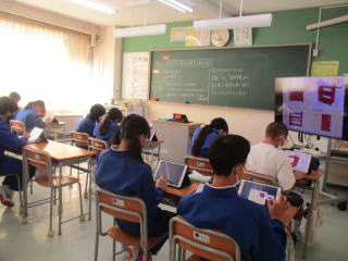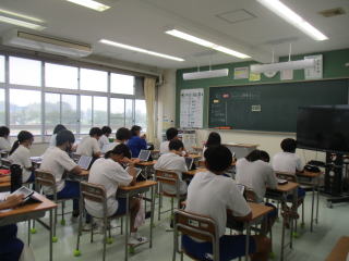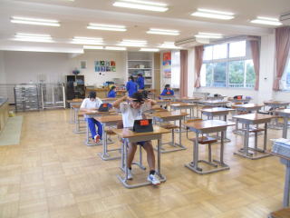 本日の5,6限に、3学年は全国学力・学習状況調査の質問紙と理科を実施しました。一人1台端末を活用して、質問に答えていました。