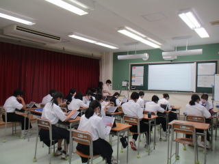 やすくなる、といった健康に役立つ話を聞いていました。2学年は英語でした。英語IBAテストのアンケートに回答しているところでした。3学年は