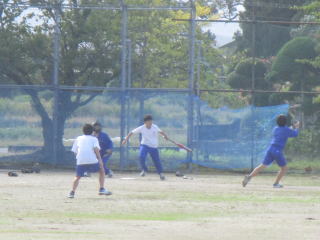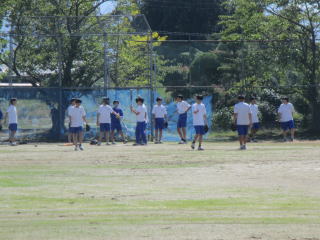 現在、保健体育の授業は、男女の人数バランスを考慮して2,3年生の合同体育を実施しています。種目はソフトボールです。男女それぞれのチームに分かれて、試合形