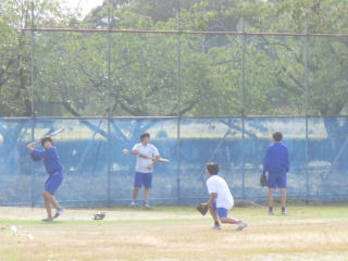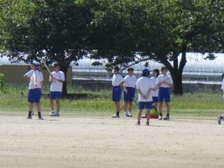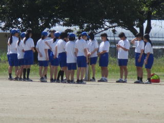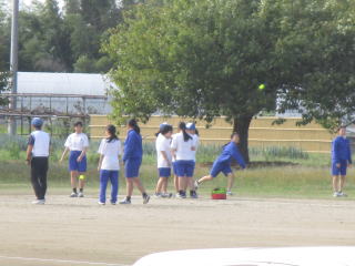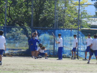 分を振り返り課題を見つけようとしていました。2,3学年は合同体育で、男女チームに分かれてソフトボールを楽しんでいました。