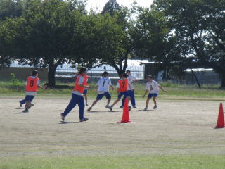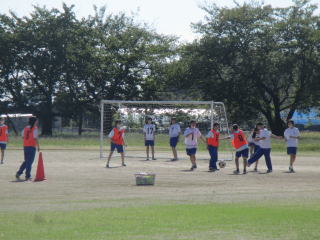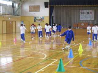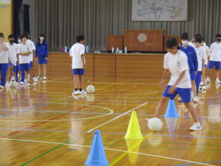 5限の1学年は保健体育で、サッカーでした。男女それぞれに分かれてミニゲームを楽しんでいました。