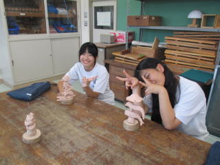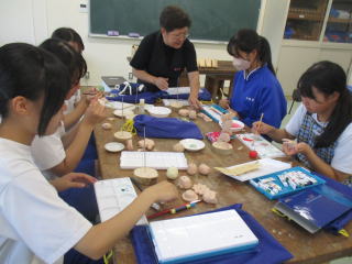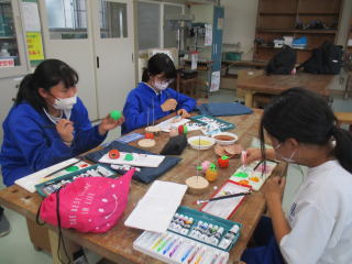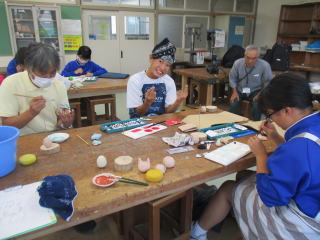 本日、創作部の陶芸教室の第2回目でした。8月26日(火)に陶土からつくったオブジェが焼き上がり、本日はその色付け作業を行いました。それぞれが思い思いに色付け