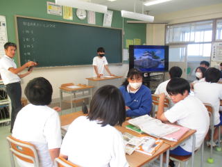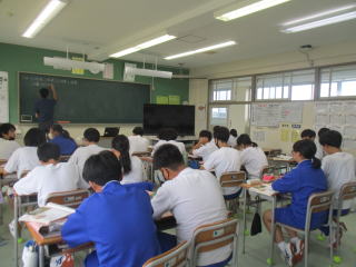 比較級の表現について学び、ALTと発音を確認していました。3学年は社会科でした。単元「行政の仕組みと内閣」の学習をしていました。