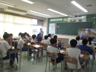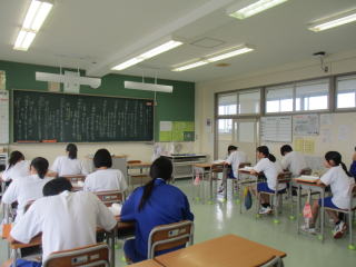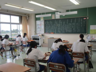 4限の1学年は国語でした。「竹取物語」の学習で、本文をペアで音読しようとしているところでした。2学年は技術科でした。「エネルギー交換」の学習で、自転