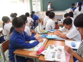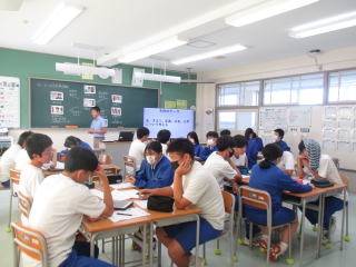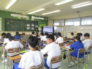 2学年担当教員の中堅研修の一環として、本日5限の社会科の授業を他校の先生方に参観いただきました。都道府県を一人一つずつ選んで調べ、一人