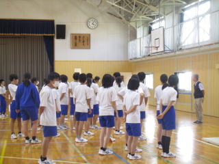 本日の放課後、10月8日(水)に五十公野公園陸上競技場周辺および升潟周回コースで実施される下越地区中学校駅伝競走大会の激励会を実施しました。出場する特設