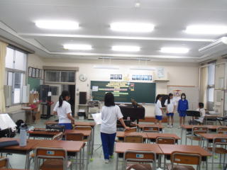 午後からの入学式に向けて、2,3年生が一生懸命に会場準備をしました。