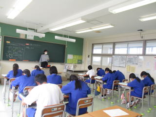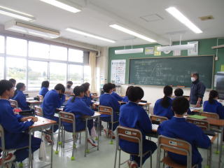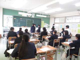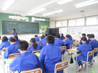 2限の2学年は社会科でした。地理分野の単元「日本の地域的特色」の学習をしていました。3学年は数学でした。「多項式×多項式の攻略法を探そう」