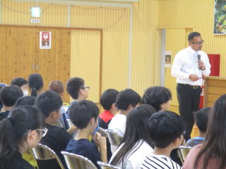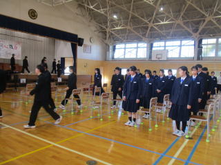 「じゃんけん列車」を実施しました。校長にも声を掛けてくれた優しい生徒がいて、一緒に仲間に入れてもらいました。ありがとうございます。