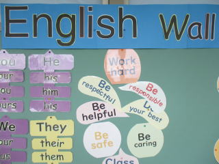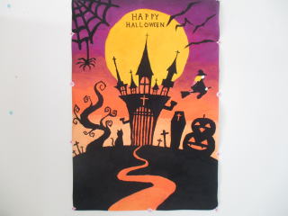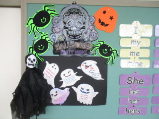 ハロウィンを明日に控え、校内の掲示物も賑わっています。B組教室前には季節をイメージした掲示とハロウィンの掲示が飾ってあり、季節感を感じることができます。