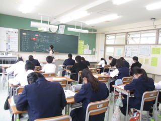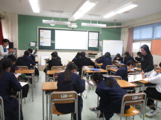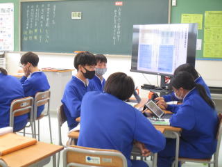 本日の1限、1学年は英語でした。Lesson7の本文の内容について、ペアトークをして内容理解を深めているところでした。2学年は国語でした。漢詩の学習で、「春望」
