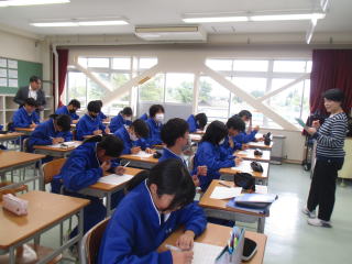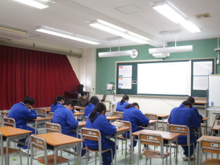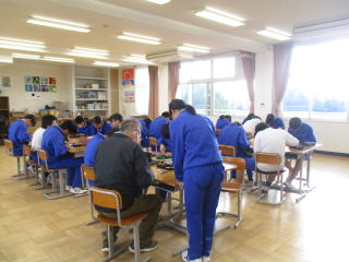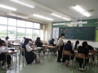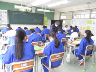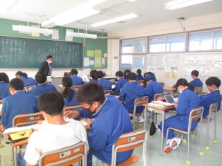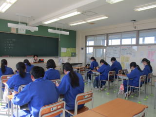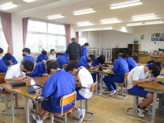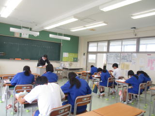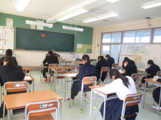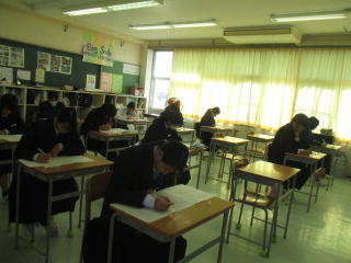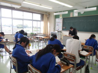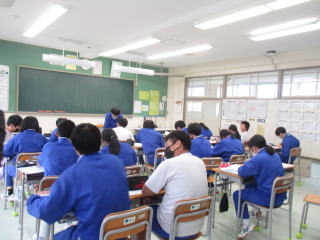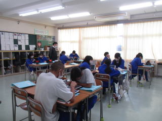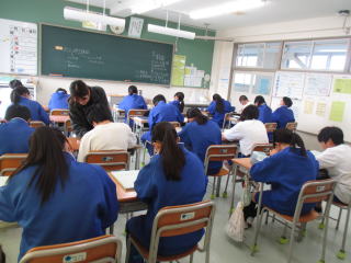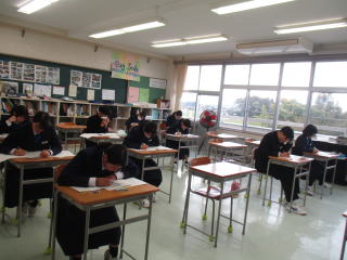 いました。3学年は本日、実力テストを実施しています。1限は国語でしたが、一生懸命、解答用紙に解答を書き込んでいました。