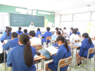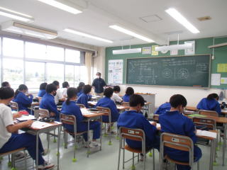 本日の1限、1学年は数学でした。帯活動の基本問題演習の後、比例実数についての学習にとりかかろうとしているところでした。2学年は理科でした。水蒸気