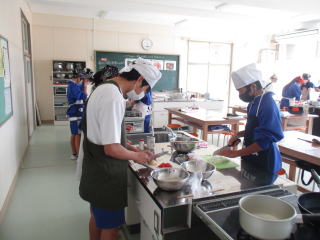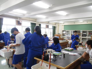 本日の3限、1学年は家庭科で調理実習です(3,4限)。ハンバーグを作っていました。2学年は技術科でした。単元「エネルギー変換」の学習で火力、水力、原子力