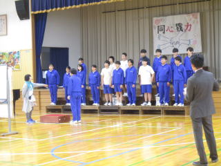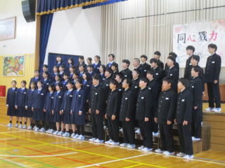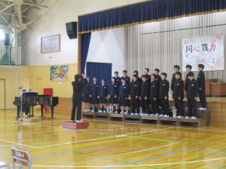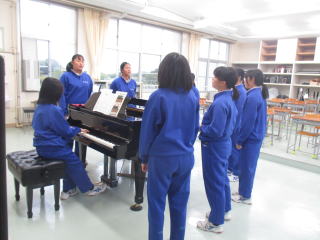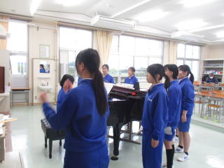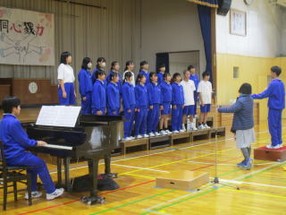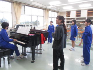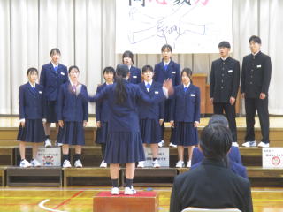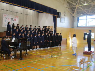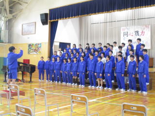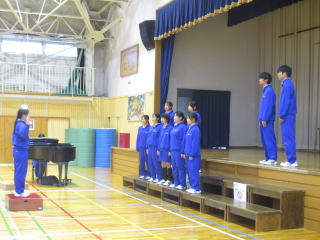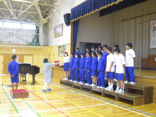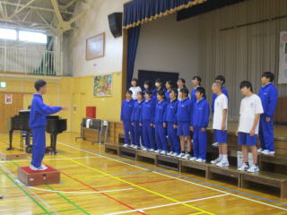 合唱や校歌の隊形確認や歌唱練習を行いました。