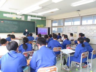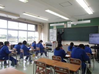 本日、各学年の技術科の授業がスタートしました。2限の1学年では、教科担任が自己紹介をしていました。2学年は家庭科でした。