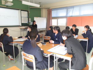 本日、2学年の英語の授業で、「Students Enjoy English(SEE) Project」に係る学校訪問として、下越教育事務所の学校支援第2課の課長・指導主事よりお越し