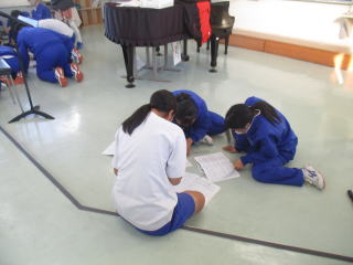 パート練習をしていました。1学年は発表時の合唱隊形確認から始めていました。