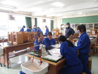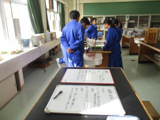 の対句表現や時代背景等について確認しているところでした。3学年は理科でした。浮力の大きさが何と関係しているかを調べる実験の考察で、各班の意見を比較している