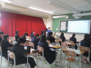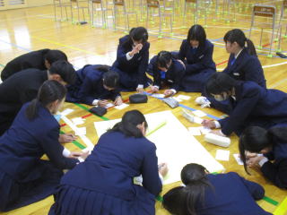 都道府県名当てクイズで盛り上がっているところでした。3学年は総合でした。1年間の総合ガイダンスの後、修学旅行の班別自主研修について班ごと