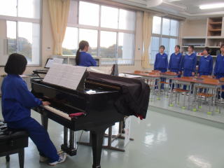 金曜日に実施される合唱発表会に向けて、今週から昼休みの合唱練習も始まりました。写真は放課後練習の様子ですが、どの学級も頑張っています。
