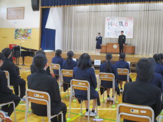 6限の時間帯に、生徒会入会式を実施しました。生徒会本部や委員長・部長を中心とした部員たちが、一生懸命に準備したことが伝わりました。