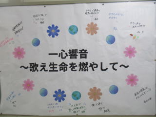 本日の6限は合唱発表会に向けた全校音楽の第2回目でした。全校合唱の後、各学級の中間発表があり、合唱を聴いた感想やメッセージを送り合いました。