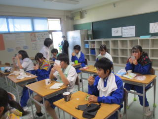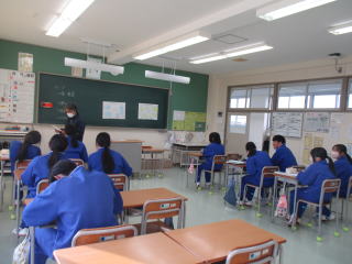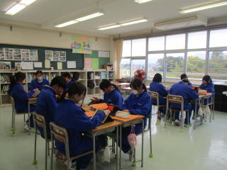 6限の1学年は国語でした。故事成語の復習で、「矛盾」の古文を音読しているところでした。2学年は音楽でした。合唱発表会の振り返りをしていました。3学年は総合