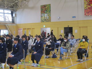 「予感」、3学年「COSMOS」、全校合唱「夢の世界を」、吹奏楽部の演奏、副実行委員長の話でした。どの学級も素晴らしい歌声で、来校者からも「感動した」「上