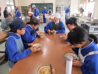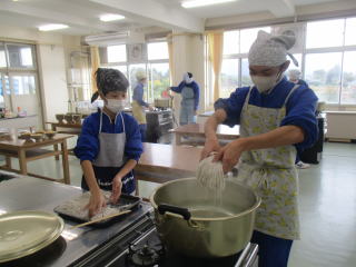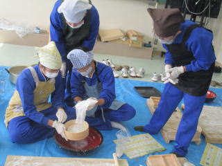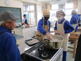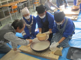 今年度の最後のそばづくり活動となる、そば打ち体験と、打ったそばの試食会を行いました。飯島甲地区の皆様からご指導いただきながら、参加した生徒たちは、