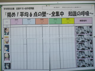 れています。授業でも副教材や課題プリントに励む姿が見られるようになってきました。学級での取組を掲示している学年もあります。